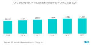 - China’s oil consumption has seen significant growth with rising demand from the increasing automotive fleet across the country. Oil consumption increased to 14,225 thousand barrels per day in 2020, as compared to 14,005 thousand barrels per day in 2019. This is expected to attract major investments to meet the demand.